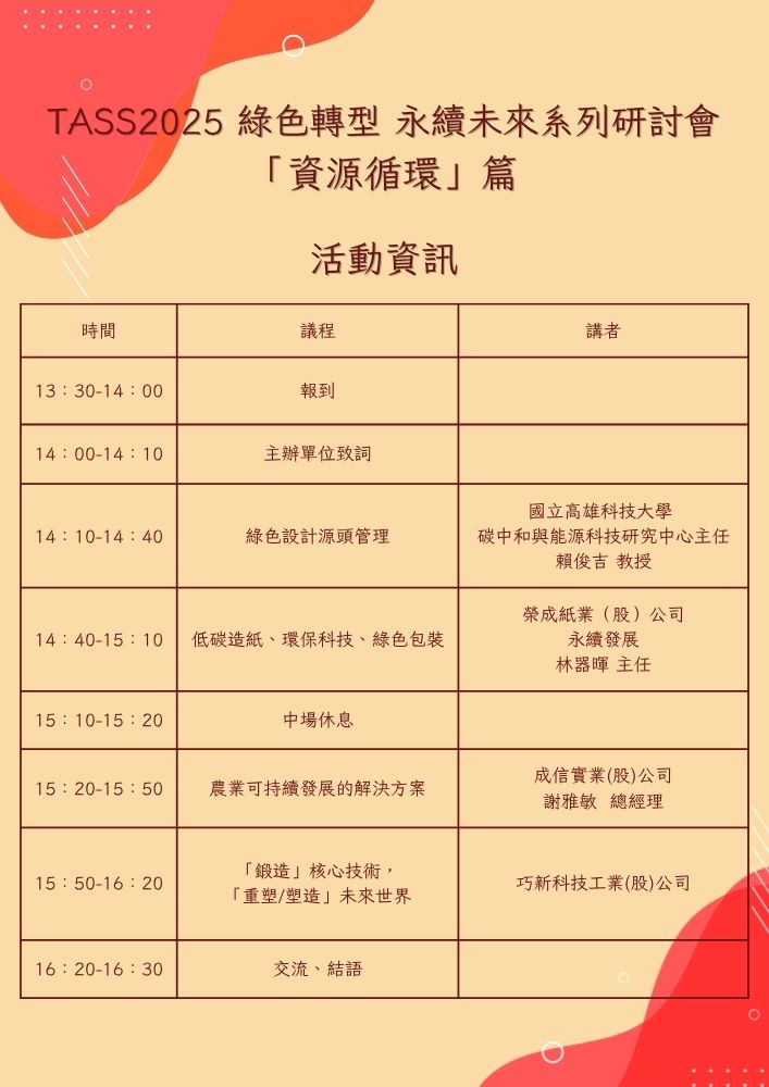 TASS2025 綠色轉型 永續未來系列研討會 「資源循環」篇